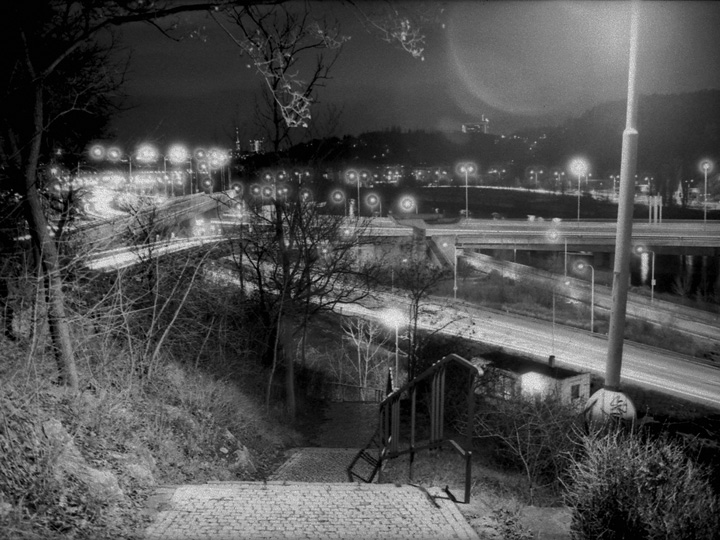 "Nightwalk" (original title: Noční Procházka) was filmed on a nocturnal circle walk around the city of Prague. It tries to understand a city by its urban surroundings, by its psychogeography and by aspects of the Other and Non-human. more>