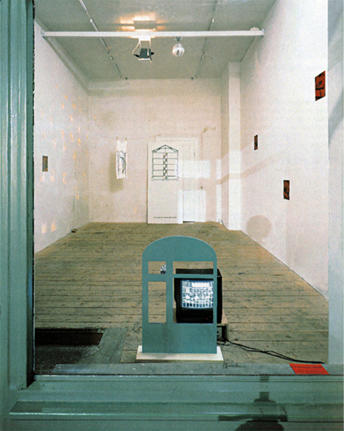 Multimedia installation at Kunstraum Balanstrasse 21, Munich 1998 The Scattered Chamber investigates the psychotopology of specific urban spaces and situations, which have generated, by the expansion of the private sphere, a diverse, heterogene and displaced form of architecture. The installation assembles images of public and semi-public spaces that are latently filled with privateness, as well as images of media worlds or computer games that may represent virtual homes. According to these specific qualities the images are presented either as a rotating slide projection, an animation film or a silkscreen print. Each of the media refers to the dissolution of the private space and its transformation into a network of discplaced and scattered forms of temporary living spaces.